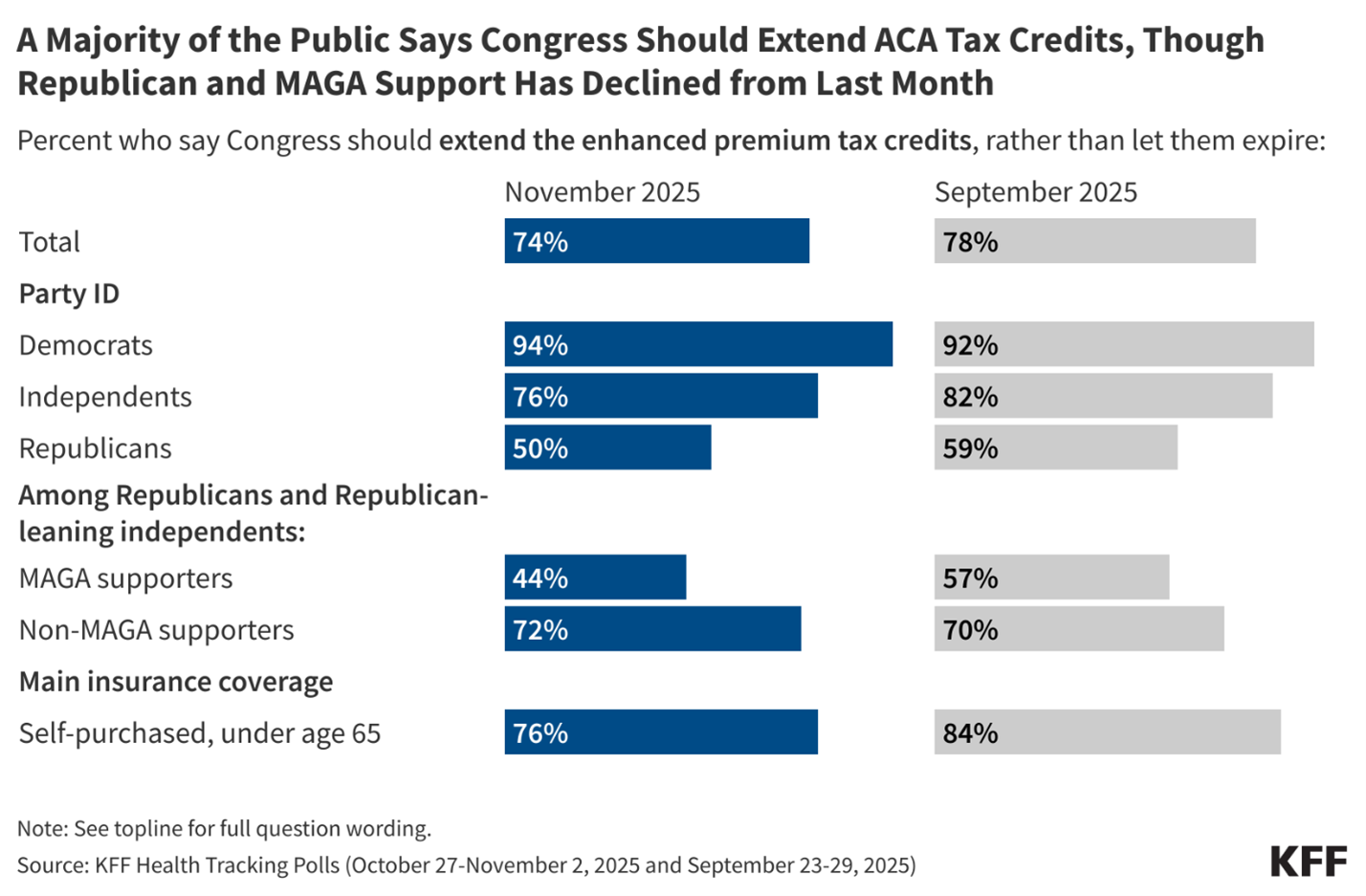 Greater than half (55%) of those that buy their very own medical insurance, most of whom accomplish that by means of ACA marketplaces, say Democrats ought to refuse to approve a funds that doesn’t embrace an extension for ACA subsidies.